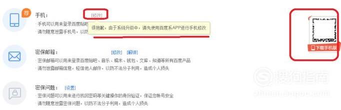 我们发现当前用电脑登录,不能修改手机号,必须用app登录才行。所以我们扫码下载百度账号管家app,如图所示,用微信或者其他第三方软件扫码下载就行。