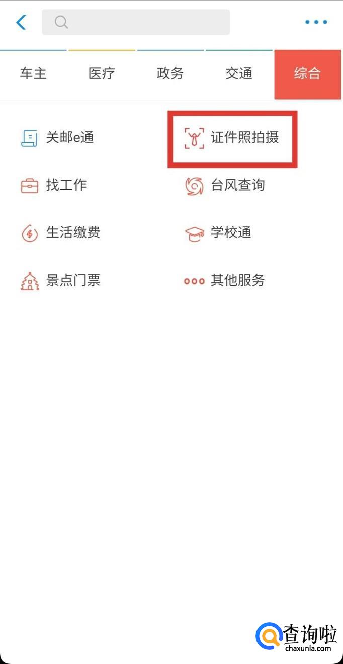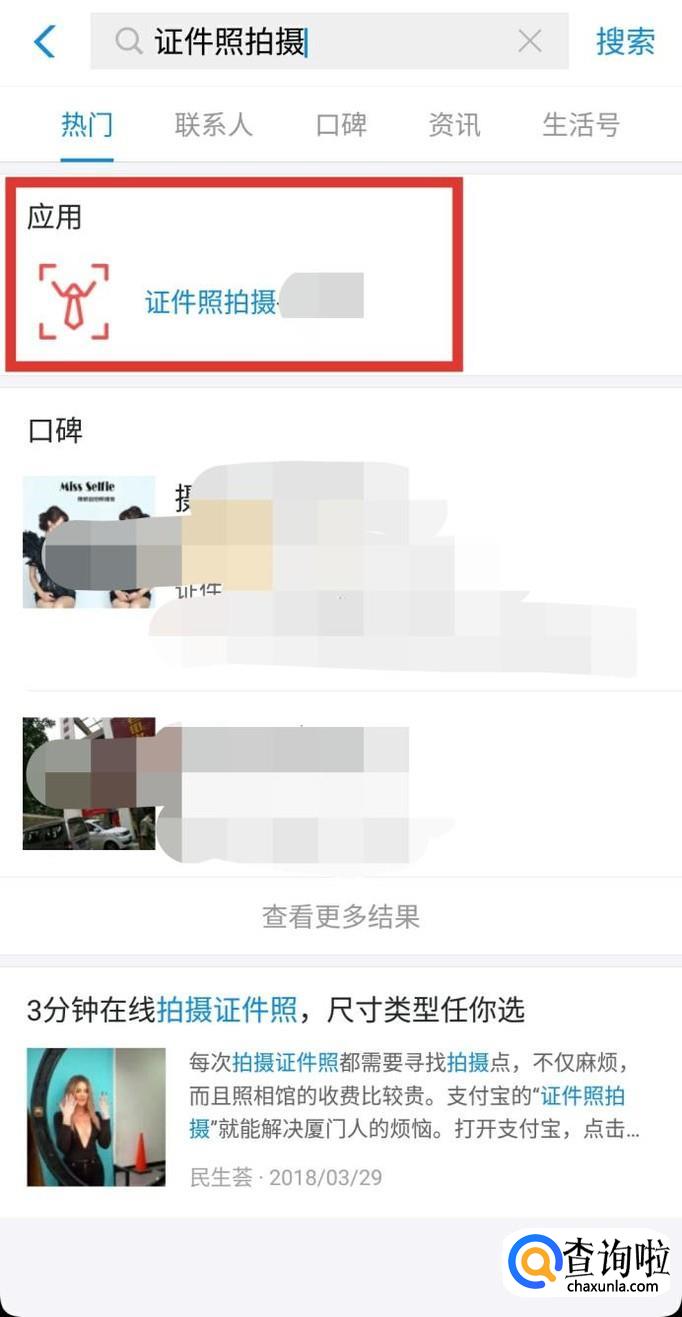 在搜索框中输入证件照拍摄,就可以看到你所在城市有一个证件照拍摄的应用,进去之后也是一样的。