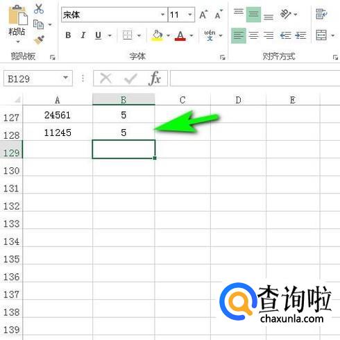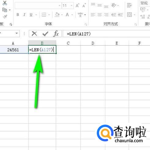在B127中输入LEN函数公式:=LEN(A127);再按下回车键,即可得到该单元格的字符个数为5