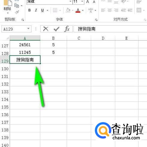 我们再在A129单元格内输入四个中文,如图所示。