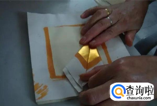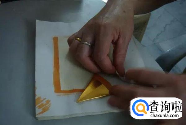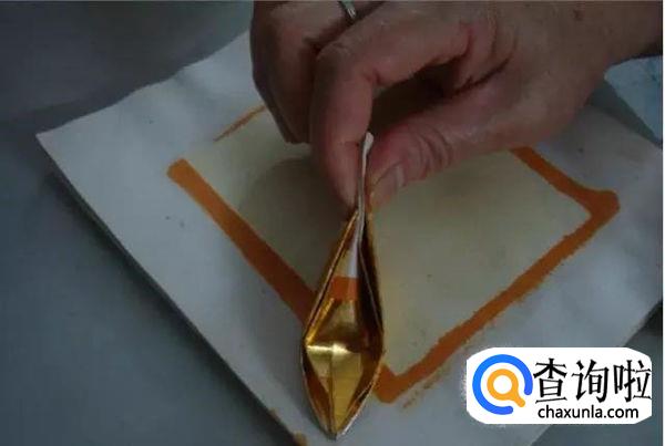 捏住底部,打开三角形,往下按,这样,一个“小件”就做成了。
