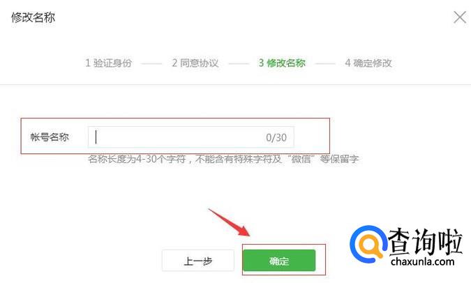 这时候只需要在空白框上按要求填上自己要修改的名字,点击确定,等待审核,审核通过就可以完成名字的修改。