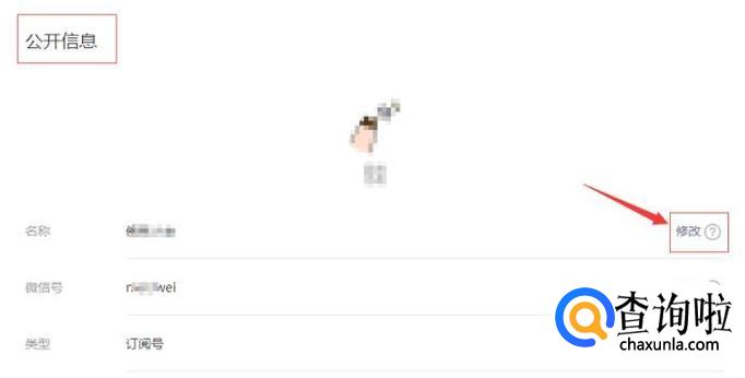 在页面上可以看到公众号的信息,还有名字右边有修改按钮。