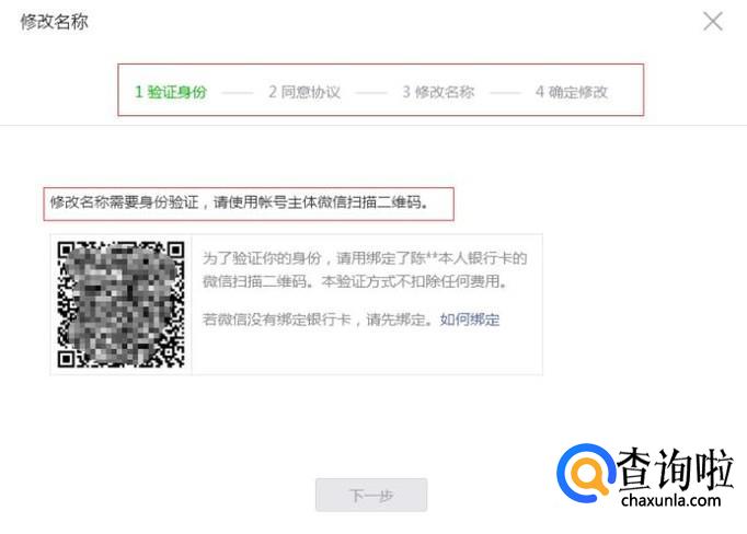 点击修改按钮,进入认证页面,怕公众号名字被他人误改,所以需要再次认证,需使用账号主体的微信号扫描才可。