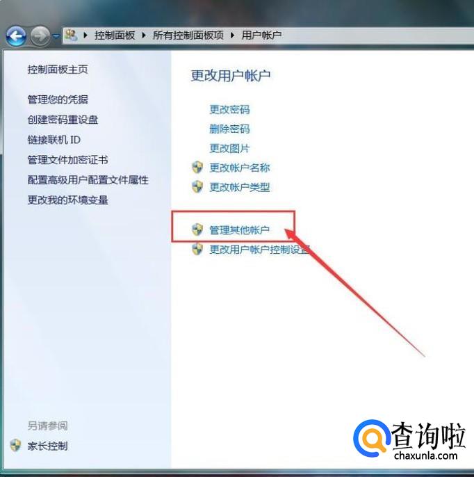 进入用户账户设置页面之后,点击“管理其他账户”选项。