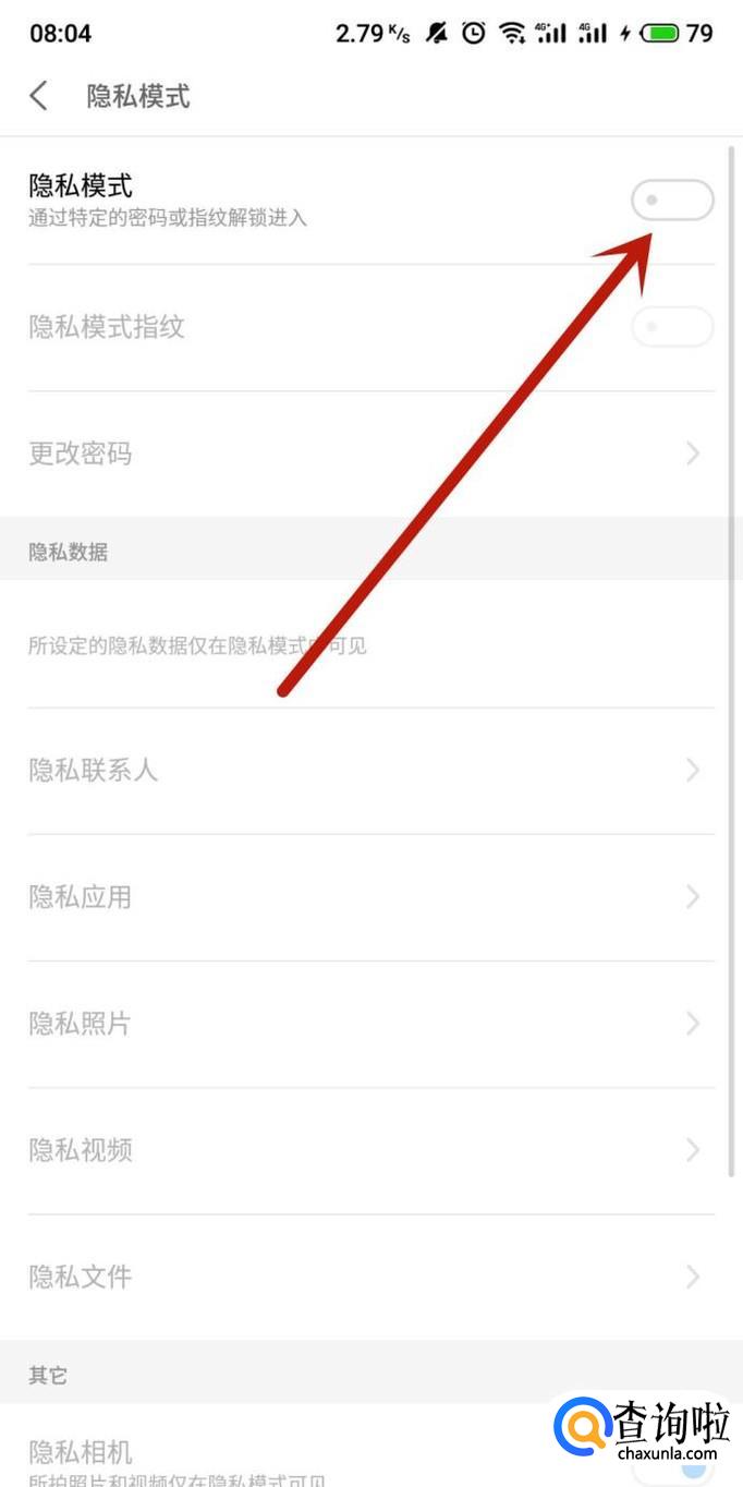 进入之后,点击隐私模式位置的开关。