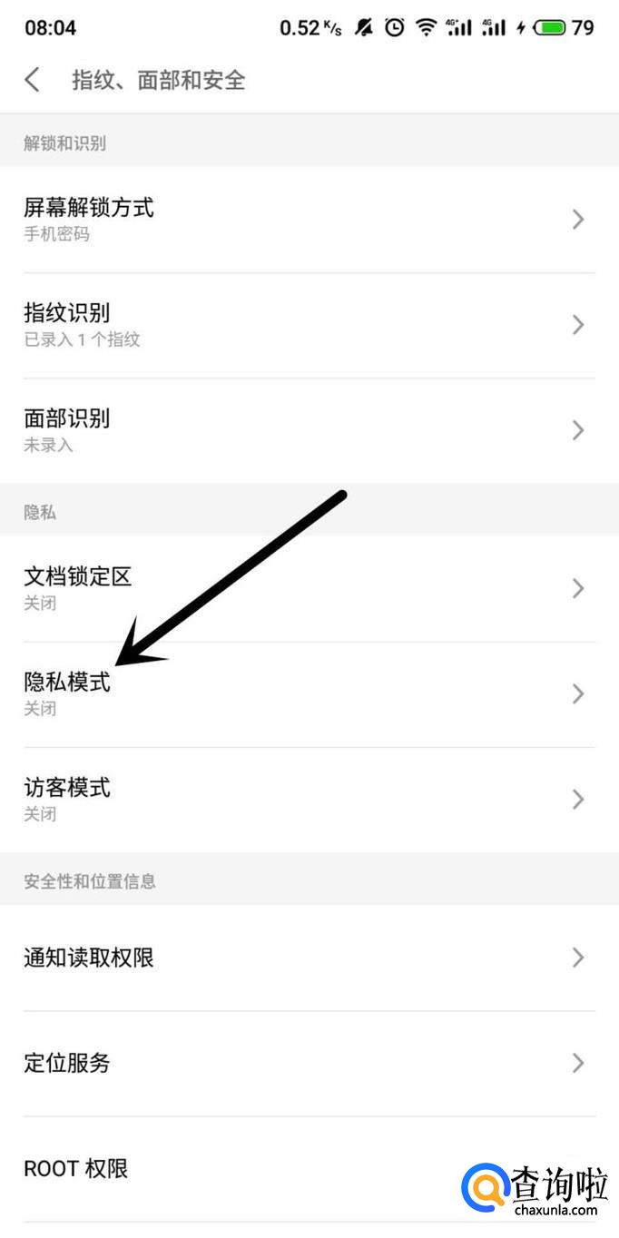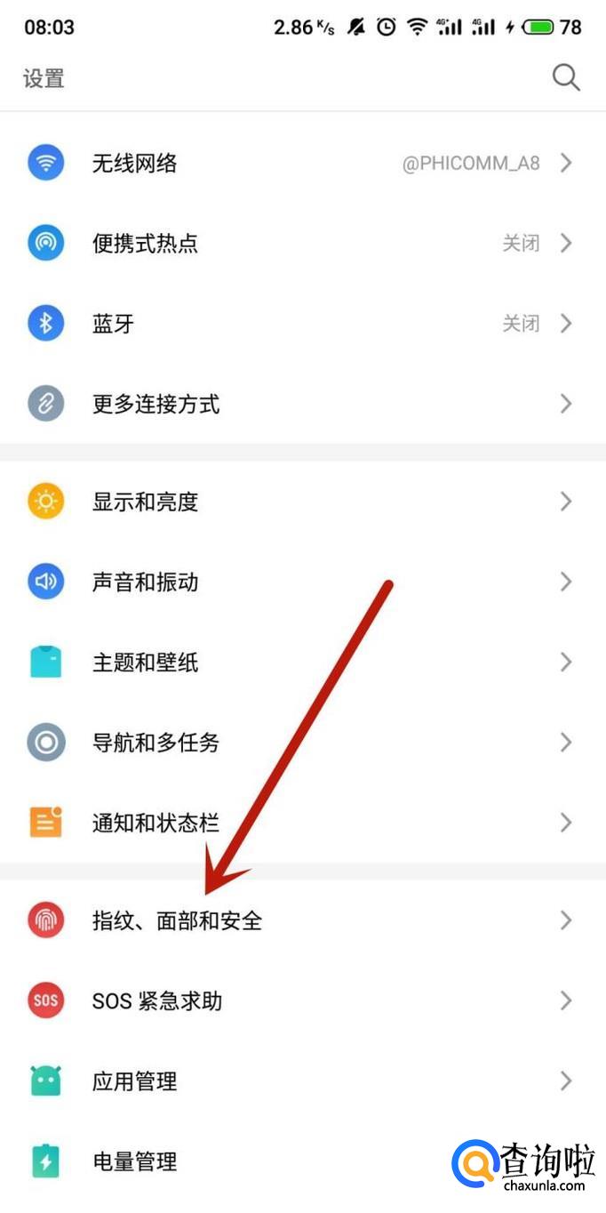 进入手机设置,点击“指纹、面部和安全”,如图所示。