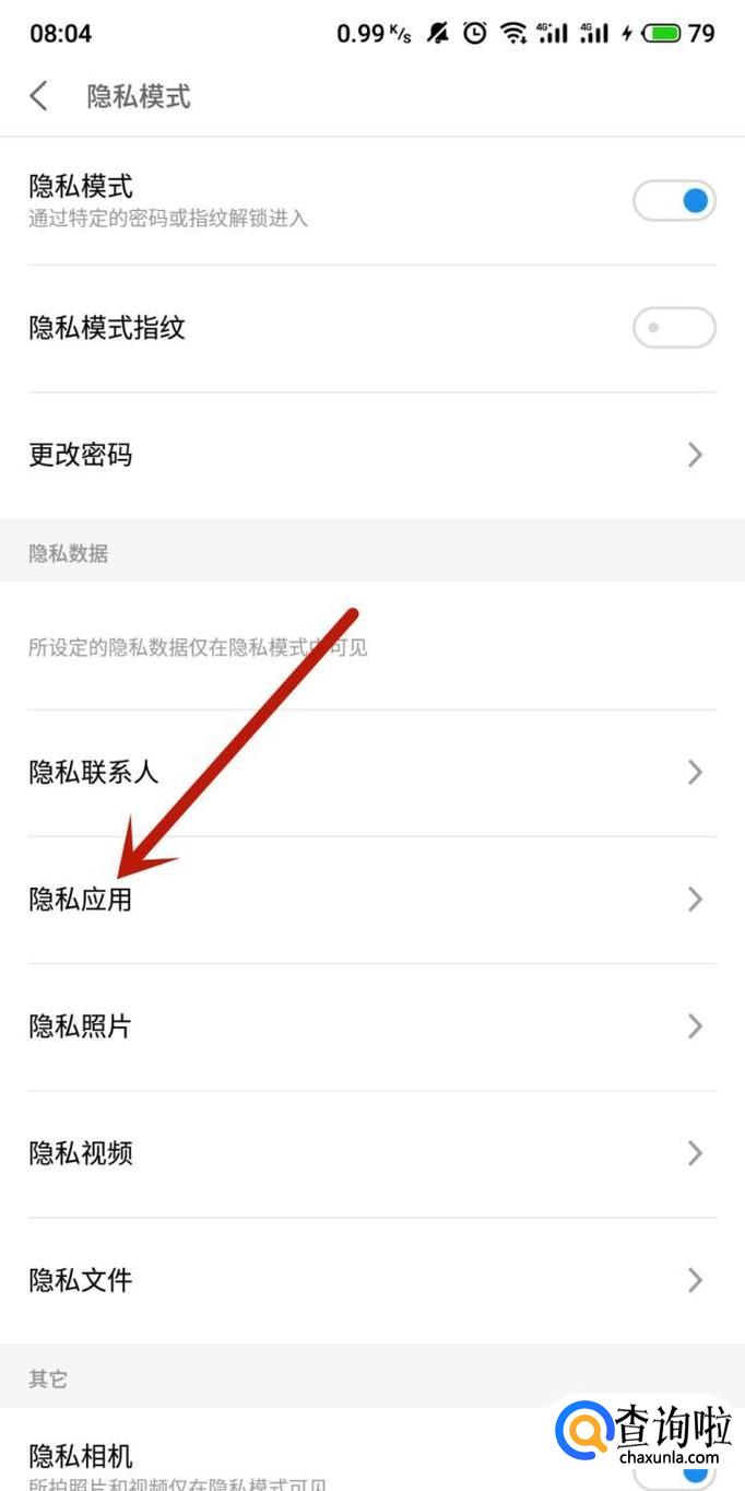打开之后,点击“隐私应用”,如图所示。