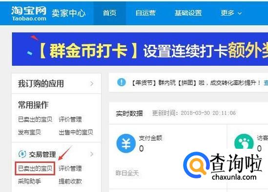 左边栏的交易管理下,点击”已卖出的宝贝“