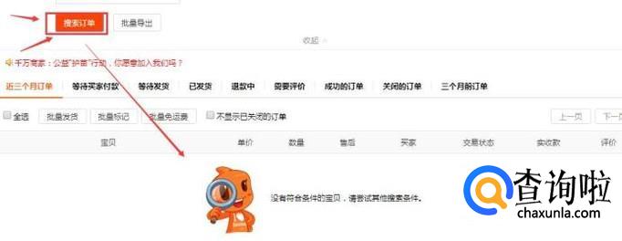 点击搜索订单,下方就会出现所有的交易订单(因为我的店铺没有任何交易,所以搜不到订单)