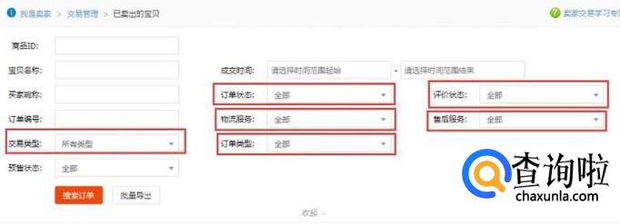 可以看到筛选菜单,要查看所有的交易订单,红框部分必须选择全部,否则可能会漏选部分订单