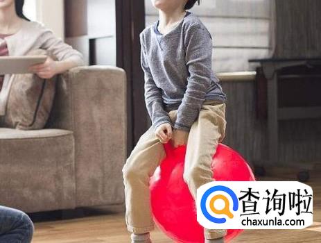 先让儿童坐在跳跳球的中间,两腿屈膝,要根据孩子的身高,选择大小合适的跳跳球。