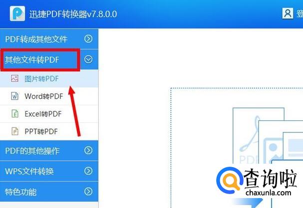 打开之后在左侧工具栏中找到其他文件转PDF下级菜单中的图片转PDF