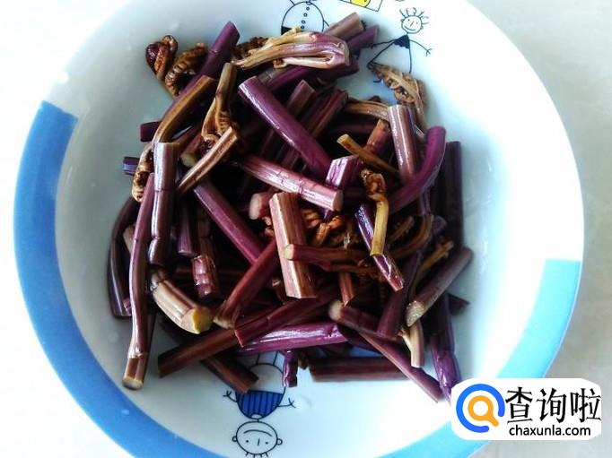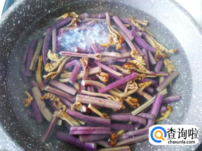 锅里装适量的水煮沸,然后放蕨菜进去灼1分钟。