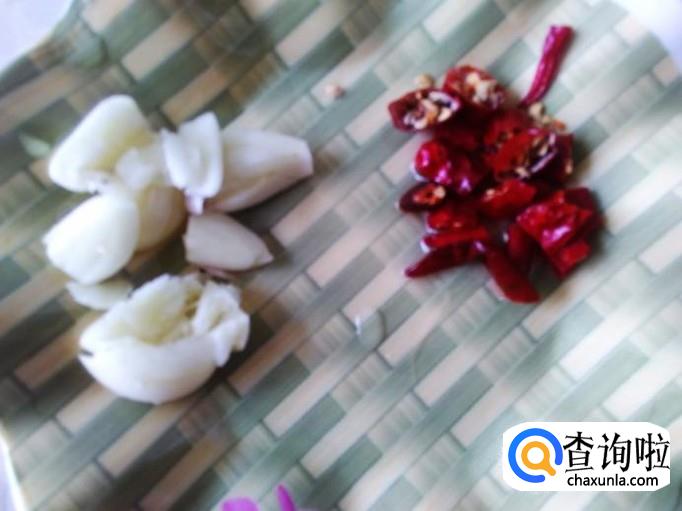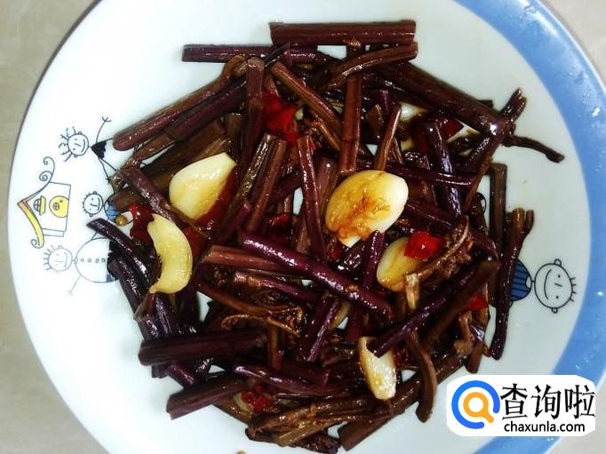 蕨菜250克,小米辣、蒜米适量,1勺生抽。