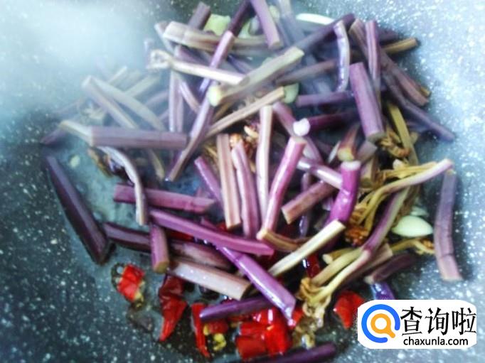 大火翻炒2分钟左右,熄火。好吃的小米辣爆蕨菜就做好了。