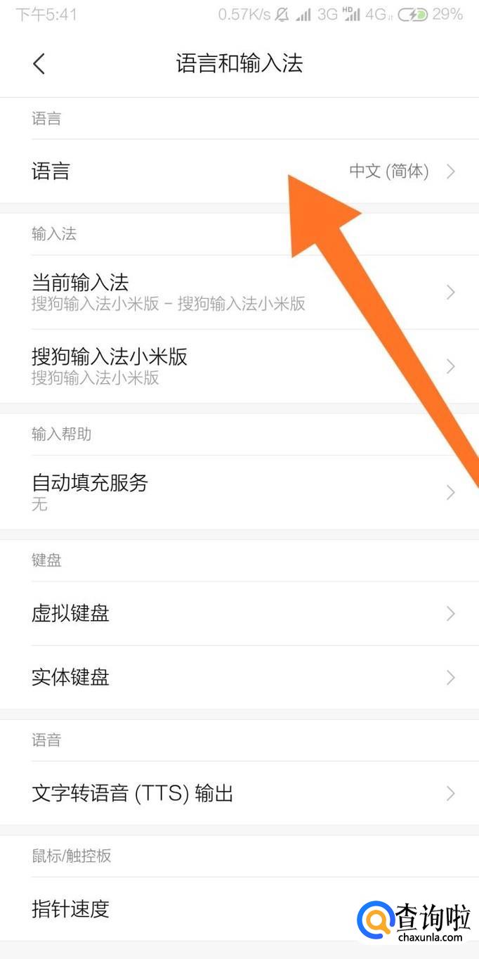 再点击进入“语言”设置选项。