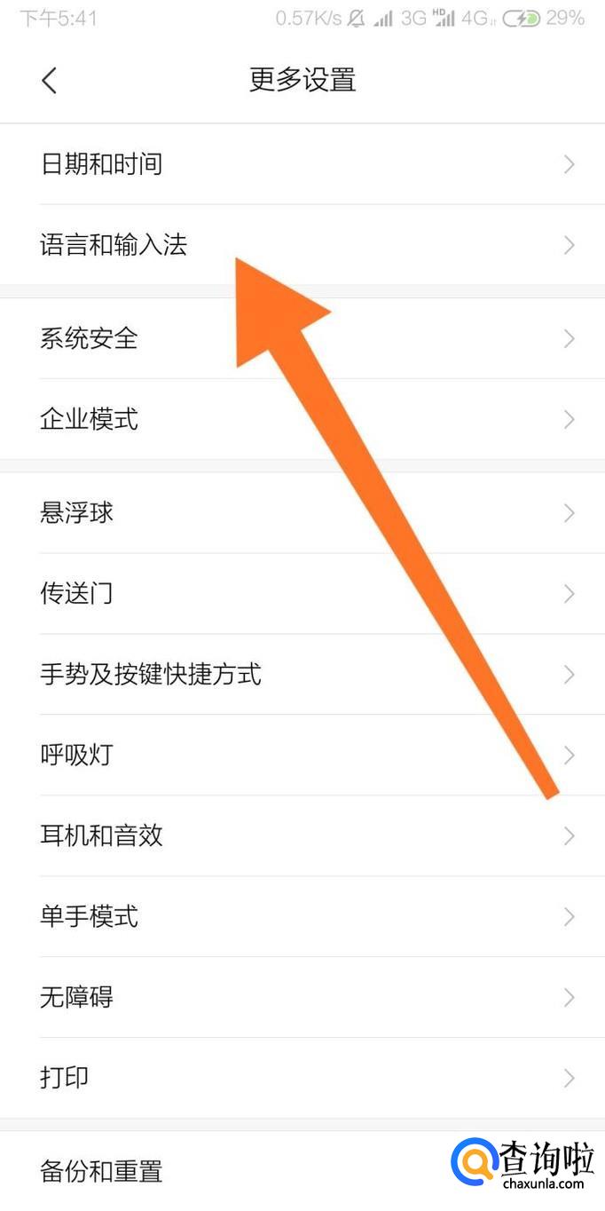 接着点击进入“语言和输入法”设置选项。