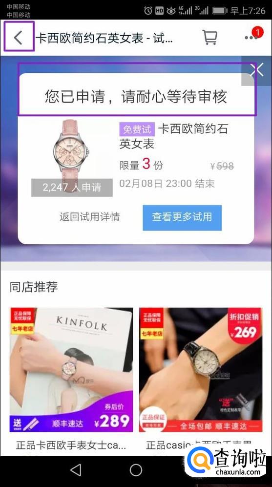 可以看到我们刚刚点击申请的宝贝了;