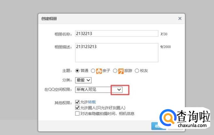 之后我们点击在QQ空间权限后面的下拉箭头;