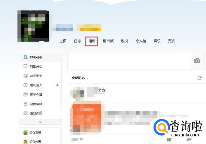 首先,我们进入我们的QQ空间,然后我们点击相册;