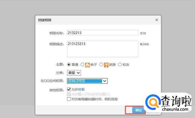 之后我们就可以点击确定按钮,然后上传照片了,这样发布出来的动态也就自己可以看见,别人是看不到的。
