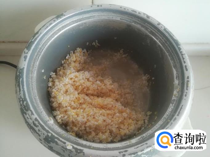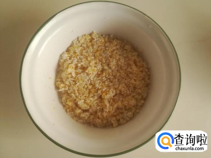 把大米和糜米放盆里,加水洗上三遍,清洗干净。