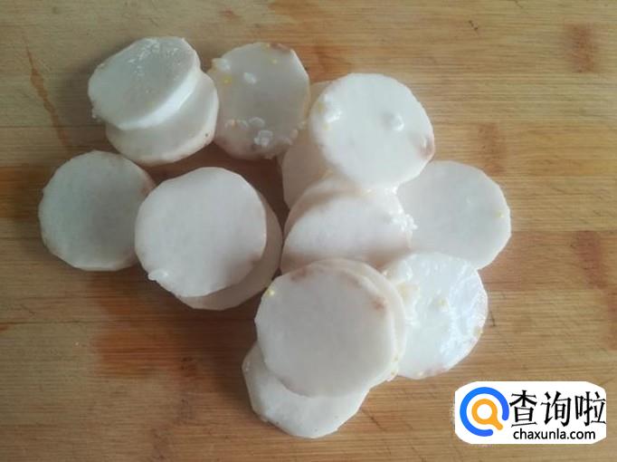 把山药去皮,切成薄片,去皮时最好带上手套,不然皮肤会发痒。