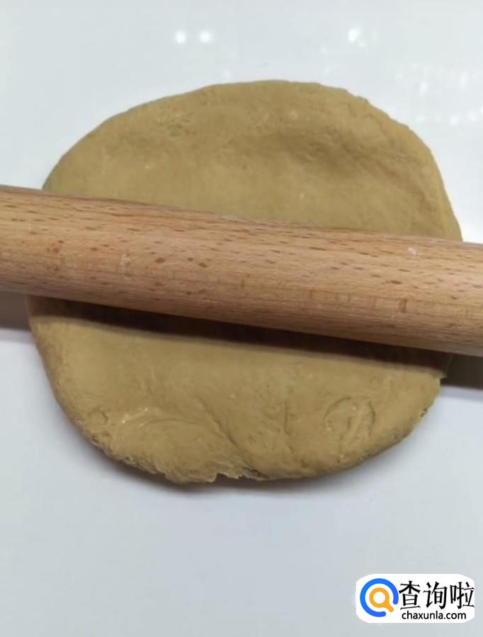 接着我们用擀面杖将两个面团分别擀成薄片,将红糖的面片放在牛奶的面片上面