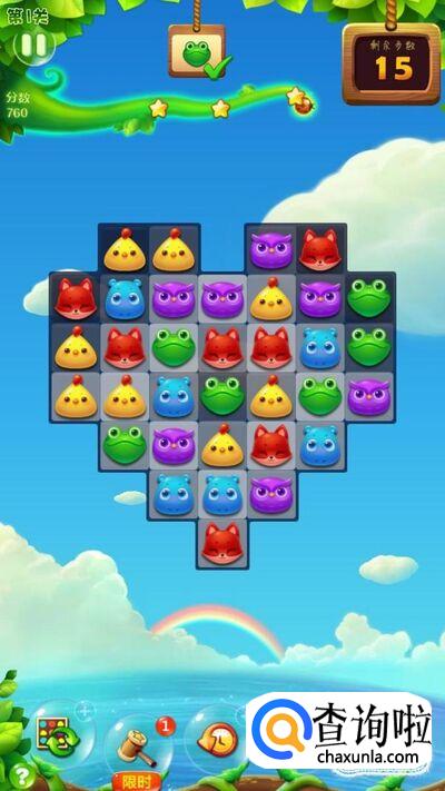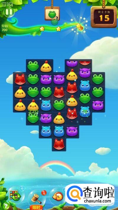 这时候随便消除两只青蛙,任务就完成了,小编这里完成任务以后还剩15步,而这15步就会当做奖励送给你加分,最后我们就通关了,而且是三星哦!
