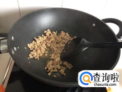 油锅烧热放入少许油,放入肉末煸炒至变白,盛起待用。