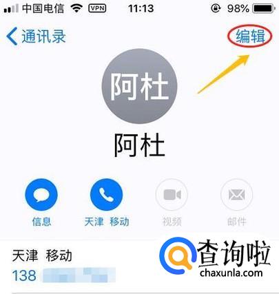 然后我们注意到此页面的右上角有一个"编辑",点击此处往下拉动页面可以看到目前针对此人在用的手机铃声;