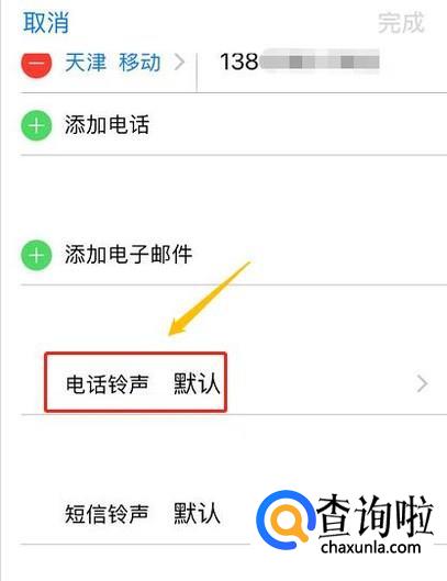 点击铃声选项,我们就可以单独给他设置系统自带的其他铃声了,选择完毕以后在页面右上角点击"完成",以后此人来电就会是单独的铃声了,如图所示...