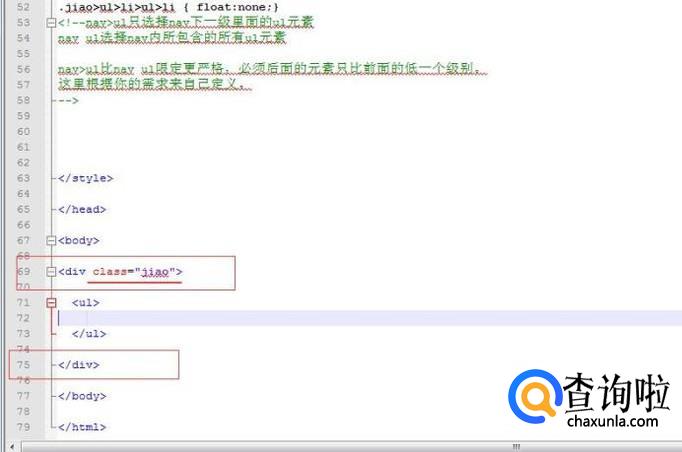 div中所用的样式为刚才咱们声明的样式“jiao”这个盒子来描述