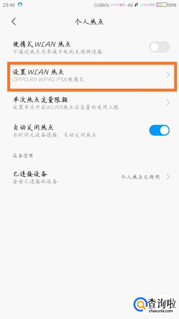 然后返回之前的界面,点击打开WLAN式便捷热点即可。