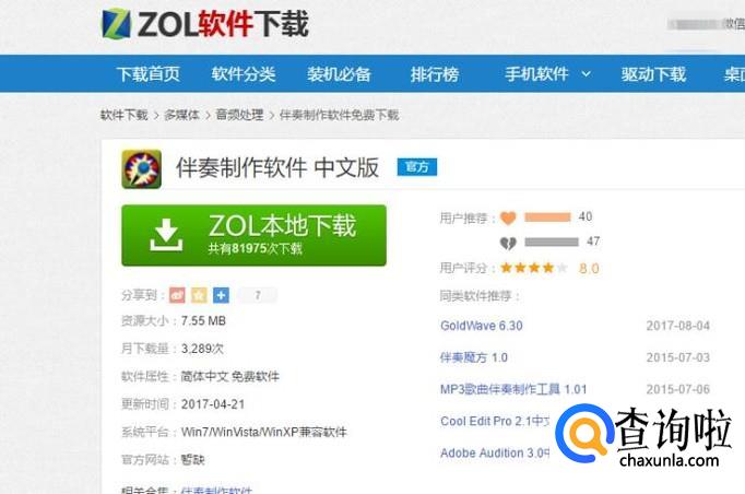 首先我们需要的ZOL软件下载网站,搜索并且下载 伴奏制作软件