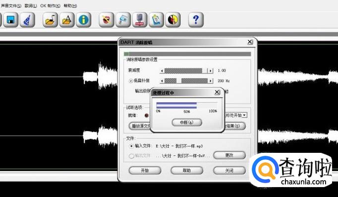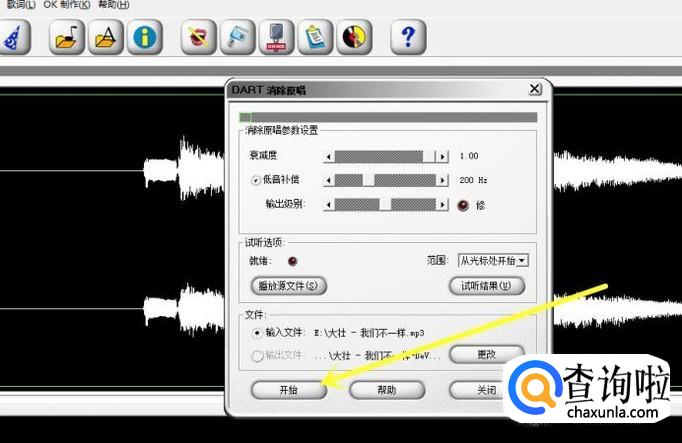 等待 消除原唱 选项面板弹出后,我们选择 开始 选项,就可以消除原唱了
