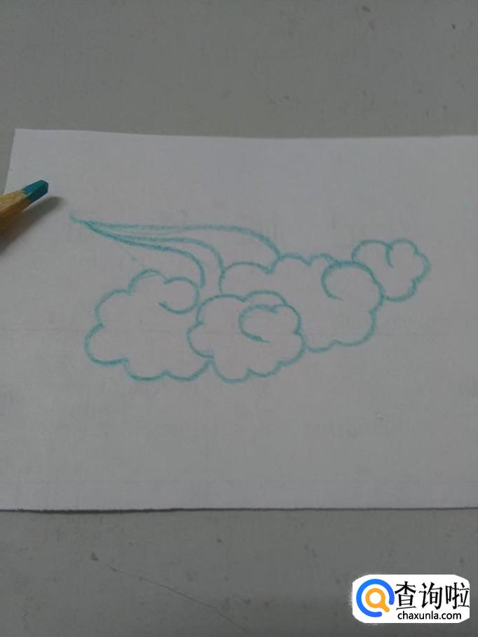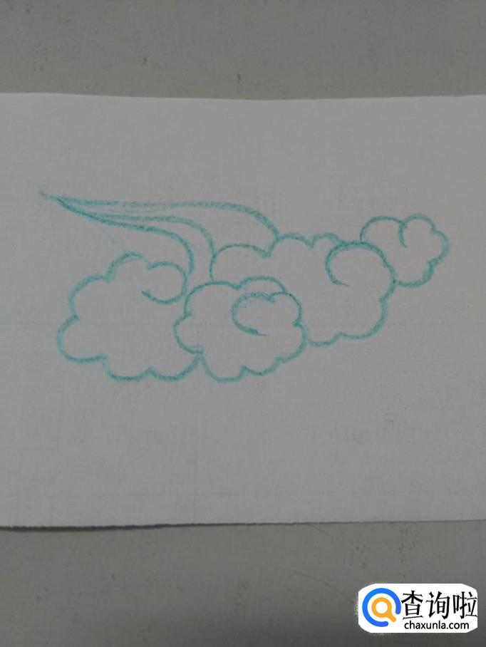 最后,在这片云的上方,画三条弯弯的曲线,表示云朵的尖,漂亮的云就画完了。