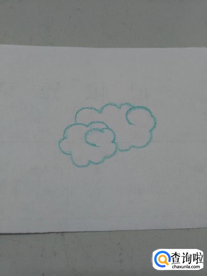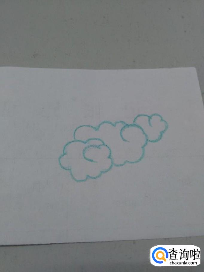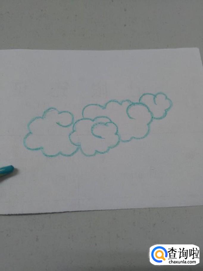 用彩笔在纸上画一圈相连的弧线,在中间起笔,落笔处要把第一条弧线圈在里面,表示一朵云。