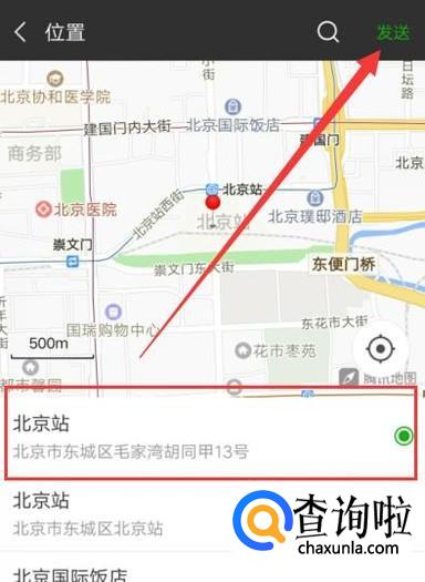 定位就回虚拟定位到图示位置,点击发送即可将其发送出去,如图所示。