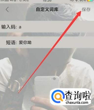 进入之后,设置输入码和短语,点击“保存”,如图所示。