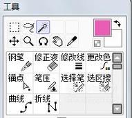 用鼠标画线条,不象板绘那样用笔画得又准又稳,但鼠绘可以用曲线工具,用曲线连线的方法,就能画得又快又准。曲线工具如下图。