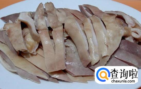 将猪肚洗干净后,锅中放一半锅水然后放入猪肚,切点姜片,将猪肚煮熟,然后捞出。