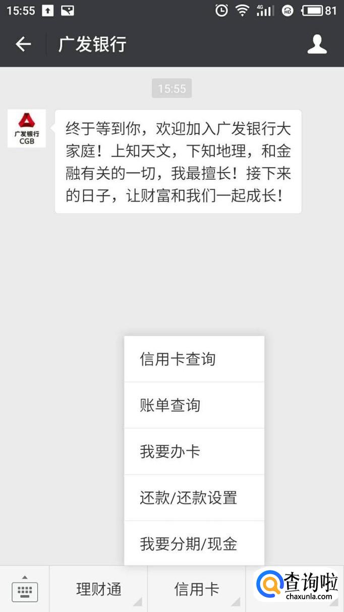 用微信关注广发银行去查询。微信先关注广发银行,然后点信用卡,绑定自己的信用卡,即可查询,也是非常简单。