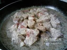 首先我们需要用用开水焯一下脊骨抛去血沫,去除腥味我们可以加入一些姜片。