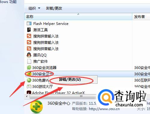接着把电脑上的杀毒软件卸载掉,比如右击“360安全卫士”,然后再点击“卸载”即可。