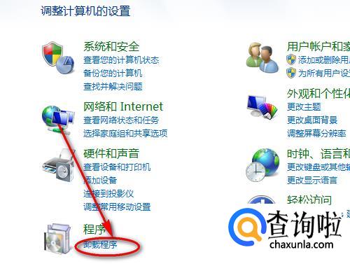 然后在控制面板窗口中,点击“程序”下方的“卸载程序”。