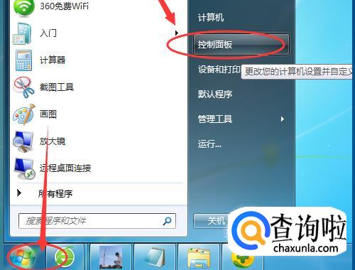 首先点击电脑左下角的“开始图标”,然后再点击“控制面板”。
