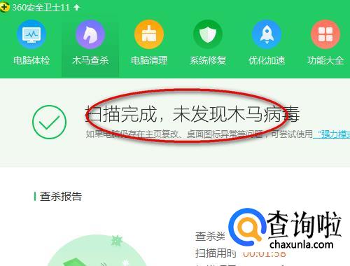 如果扫描结果有木马的话,则对电脑进行杀毒操作。