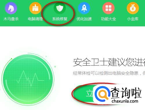 打开电脑上的“360安全卫士”,然后再对电脑进行扫描修复。
